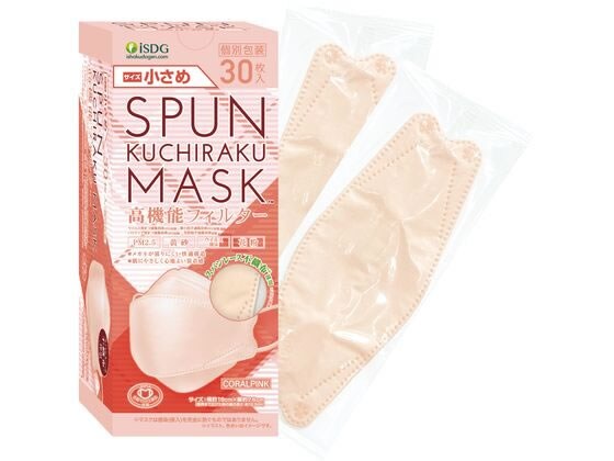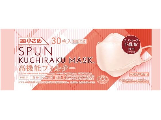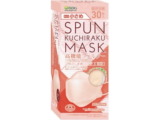 医食同源 SPUN KUCHIRAKU MASK 小 コーラルピンク 30枚 マスク 鼻 のど対策 メディカル