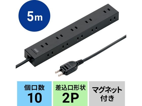 【お取り寄せ】 サンワサプライ 電源タップ 2P・10個口・5m・ブラック TAP-2210-5BK コード付き電源タップ2ピン 電源タップ OAタップ 配線パーツ 家電