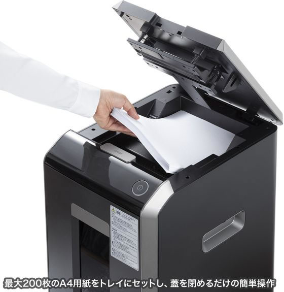 200枚のA4用紙を一括細断できる、オートフィードシュレッダー。
