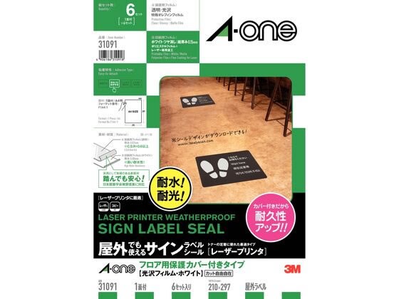 エーワン 屋外でも使えるラベルシール 耐水 A4 ノーカット 6セット