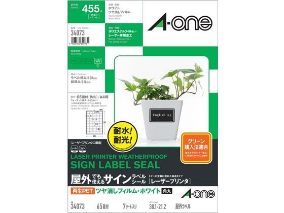 エーワン 屋外でも使えるラベルシール ホワイト A4 65面 7シート