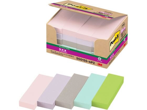 3M ポストイット 強粘着 75mm×25mm パステルカラー5色 20冊