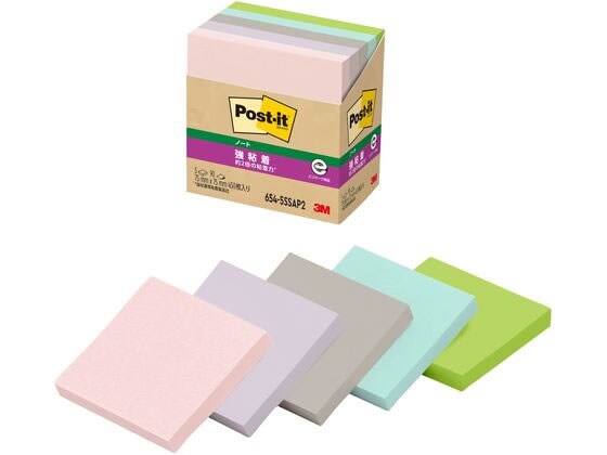 3M ポストイット 強粘着 ノート 75mm×75mm パステルカラー5色 5冊