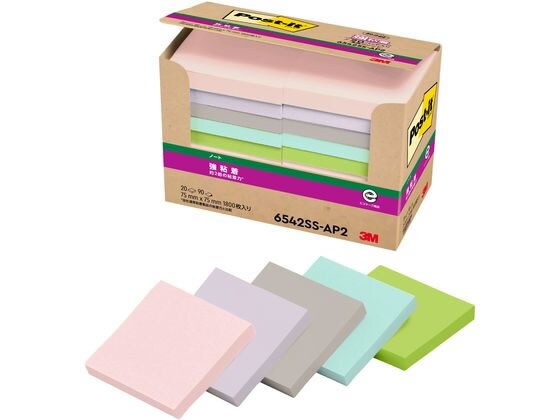 3M ポストイット 強粘着 ノート 75mm×75mm パステルカラー5色 20冊