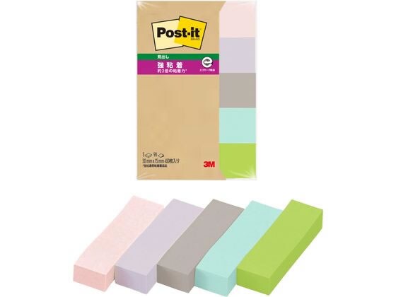3M ポストイット 強粘着 見出 50mm×15mm パステルカラー5色 5冊