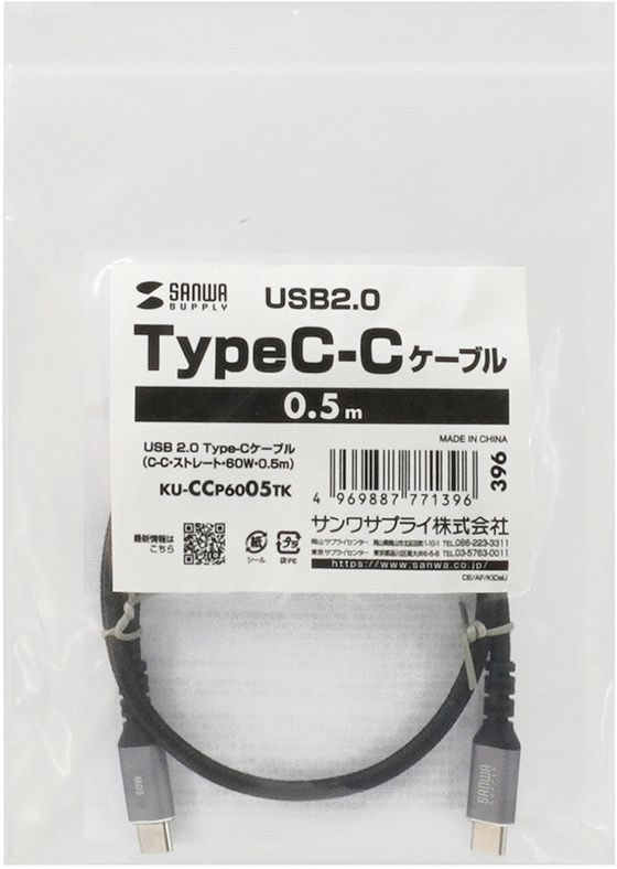 大量購入に最適な簡易パッケージタイプのUSB 2.0 Type-Cケーブル。