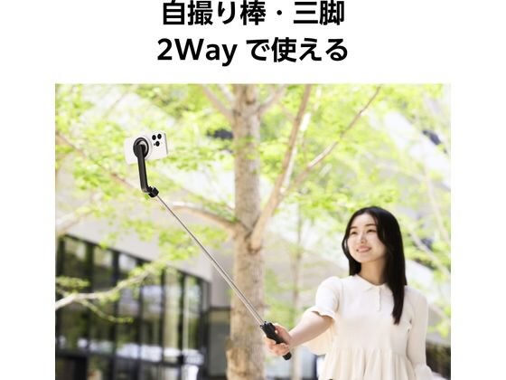 ●脚を収納すると自撮り棒としても使用できる2Way設計です。
