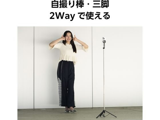 ●脚を収納すると自撮り棒としても使用できる2Way設計です。