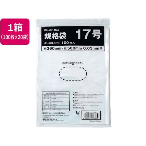 送料無料 Forestway 規格袋 LDPE 17号 透明 100枚×20袋 ビニール袋 ゴミ袋 ツルツルタイプ まとめ買い 買い置き 業務用 ポリ規格袋 厚さ0.03mm ポリ袋