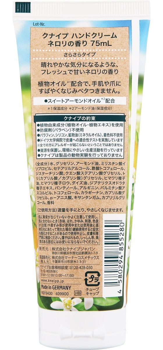 クナイプジャパン クナイプハンドクリーム ネロリの香り 75mL