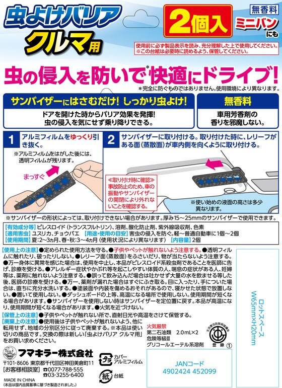フマキラー 虫よけバリア クルマ用 2個入り 虫除け 殺虫 防虫剤
