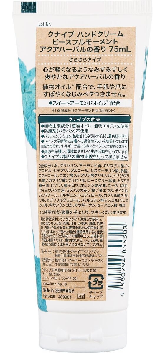 クナイプジャパン クナイプハンドクリーム ピースフルモーメントの香り 75mL