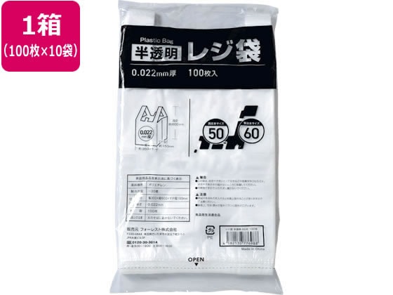 送料無料 Forestway レジ袋 半透明 60号 100枚×10袋 手さげ袋 買い物袋 ゴミ袋 保存 保管 ビニール袋 東日本60号 西日本50号 3Lサイズ まとめ買い 箱買い