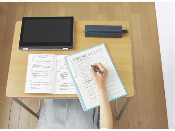 ハードな素材なので、机の上が狭いときにはクリップボードとして使える。