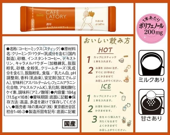 AGF カフェラトリー スティック 濃厚キャラメルマキアート 16本 51645 カフェオレ スティックタイプ コーヒー 飲料