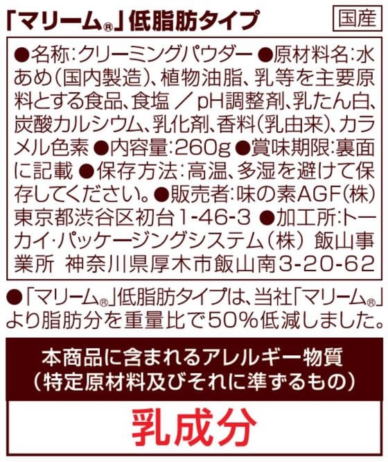 AGF マリーム 低脂肪タイプ袋 260g