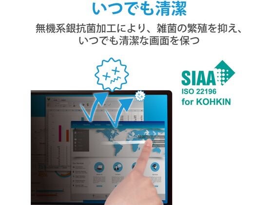 無機系銀抗菌加工により、雑菌の繁殖を抑え、いつでも清潔な画面を保ちます。