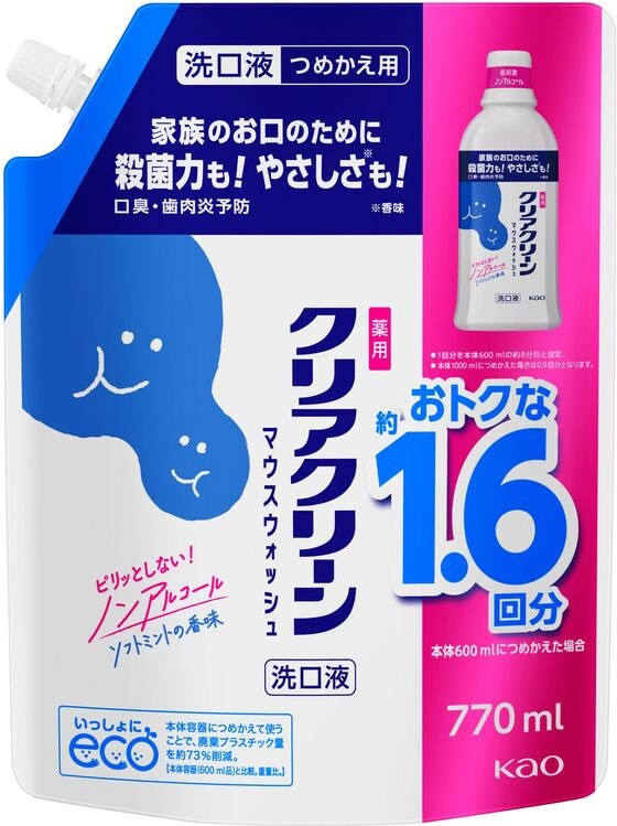 KAO クリアクリーンマウスウォッシュ ソフトミントの香味 つめかえ用 770mL マウスウォッシュ 口臭対策 オーラルケア