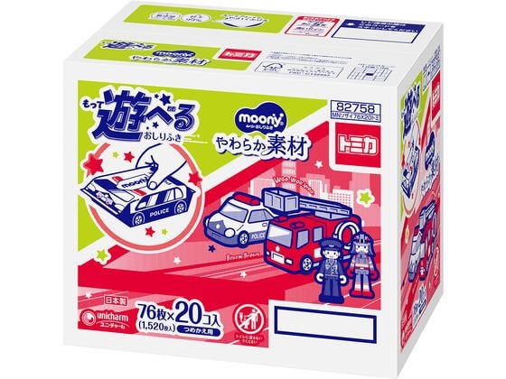 ユニ・チャーム ムーニーおしりふき やわ素材 トミカ 替 76枚×20個