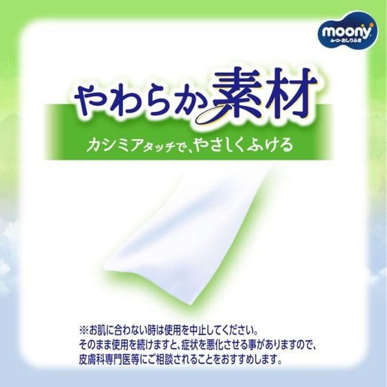 ●水分たっぷりで、時間が経ったこびりつきうんちにもサッとなじんで、やさしくキレイにふいてあげられます。