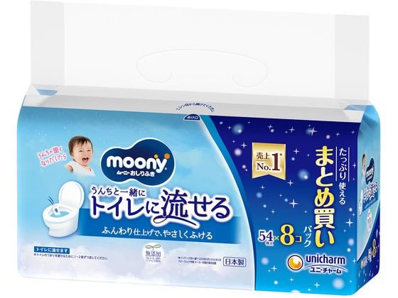 ユニ・チャーム ムーニーおしりふき トイレに流せる 替 54枚×8個