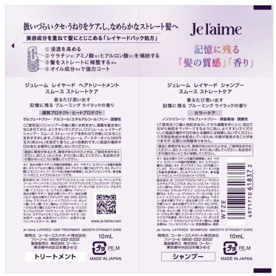 美容成分を重ねてとじこめるレイヤードパック処方で、記憶に残る「髪の質感」・「香り」を叶える。扱いづらいクセ・うねりをケアし、なめらかなストレート髪へみちびくスムースストレートケアタイプ。◇旅行やトライアルユースに便利なシャンプーとトリートメントのセット。