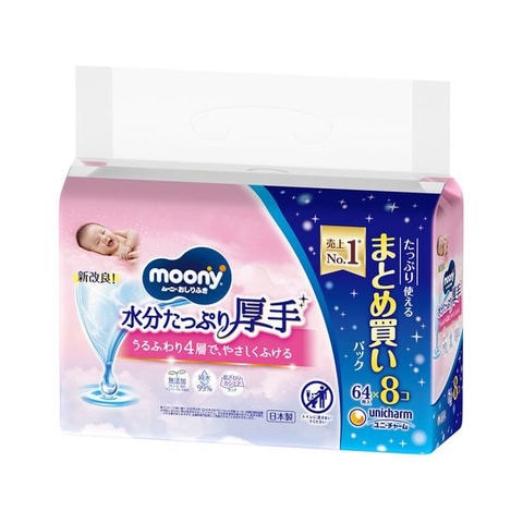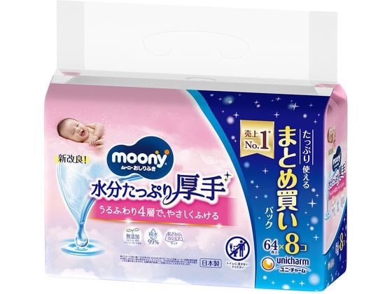 ユニ・チャーム ムーニーおしりふき 水分たっぷり厚手 替 64枚8個
