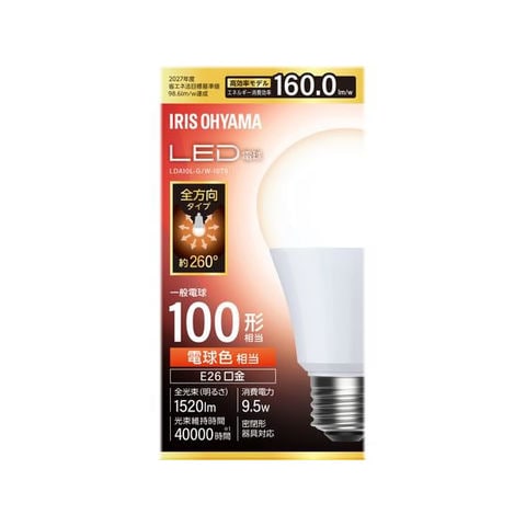 アイリスオーヤマ LED電球 E26 100形 電球色 LDA10L-G/W-10T9
