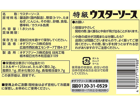 オタフク ユニオン 特級ウスターソース 1.8L ソース たれ 調味料 油 食品