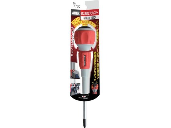 【お取り寄せ】 アネックス 叩ける電工ドライバー +2×100 7760-2-100 グリップドライバー ドライバー 六角棒レンチ 作業用品 工具