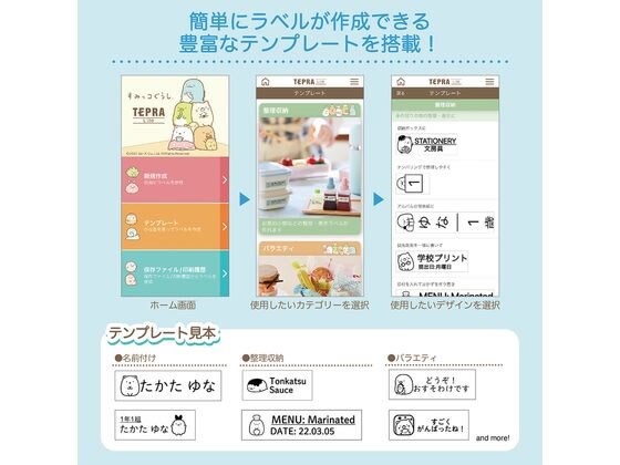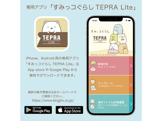 ※「テプラ」Lite LR30SGを使用するには、iOS/Android用アプリ「すみっコぐらし TEPRA Lite(無料)」が必要です。App StoreまたはGoogle Playよりダウンロードしてください。
