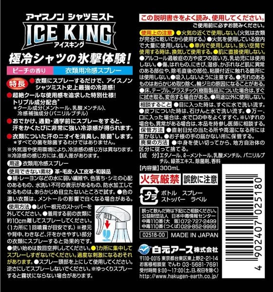 白元アース アイスノン シャツミスト ICE KING ピーチの香り 冷却 温熱 メディカル