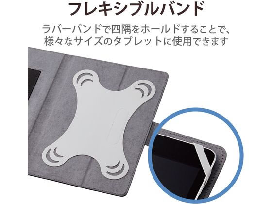 ●シリコン製ラバーバンドでタブレットの四隅をしっかりホールドすることで、8.5~11.5インチのタブレットにフレキシブルに対応する汎用ケースです。