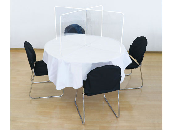 拡張性に優れており、6人用、8人用など用途に応じてパーテーションを追加できます。 透明度の高いPET素材でアルコールや洗剤での清拭が可能。 平たくたたんだ状態で保管できます。 角R加工で、安心・安全アクリルより割れにくい!