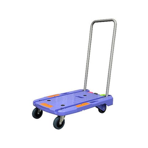 折りたたみ時にハンドル収納され天板がフラットになるため狭所への収納、平台車としても利用できます。