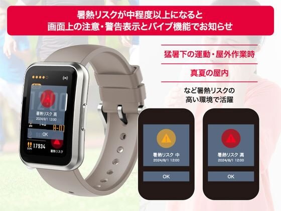 独自アルゴリズムで暑熱環境下でのリスクレベルを検出。