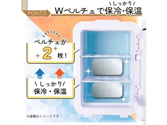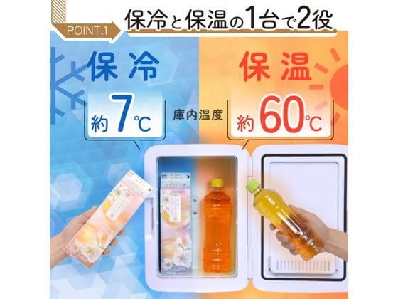 ささやき声ほどの静かな運転音約41dBで、すぐ手に届くところに置いていても、気にならず使える超静音小型冷温庫です。静音性が高いペルチェ式を採用しており、500mlペットボトル4本、1Lパック4本、350ml缶11本収納可能です。車のシガーソケットから電源が取れるので、楽しいドライブやキャンプ、ピクニックなどにもおすすめ!