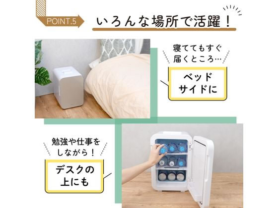 小型でとっても静か。卓上やベッドサイドなどにちょうどいいサイズのコンパクト10L冷温庫。
