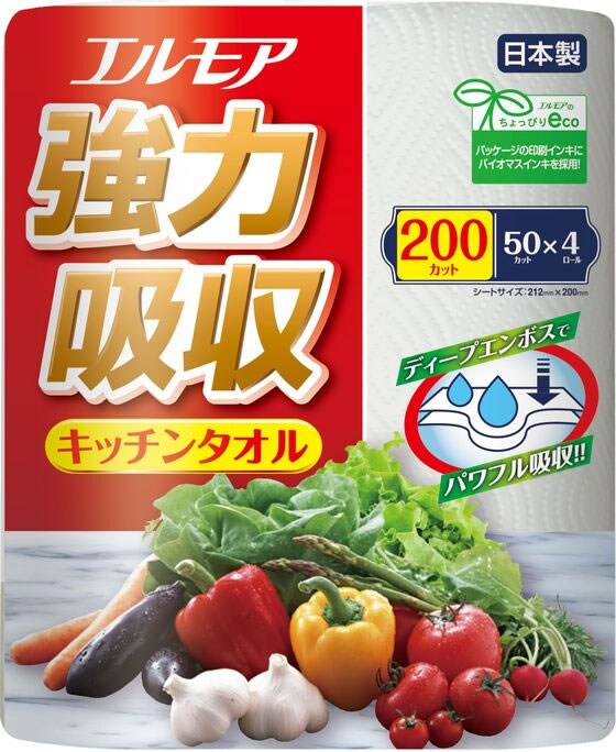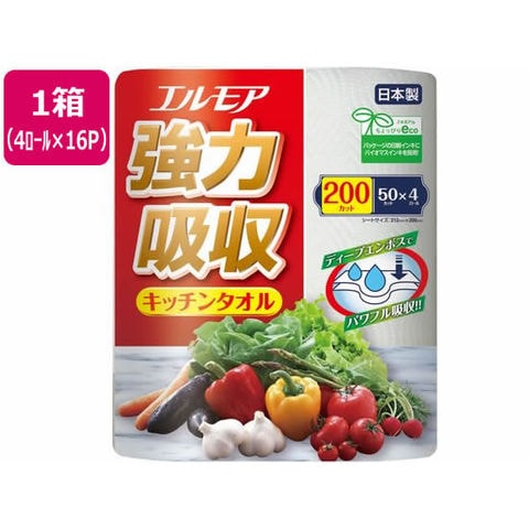 【お取り寄せ】送料無料 カミ商事 エルモア強力吸収キッチンタオル 50カット 4ロール×16パック ペーパータイプ キッチンペーパー キッチン消耗品