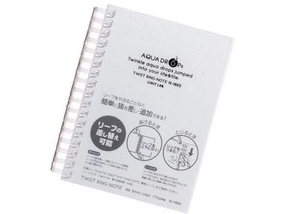 リヒトラブ AQUA DROPs ツイストノート厚型 A6 B罫6mm 乳白 70枚 バインダーノート バインダー ノート
