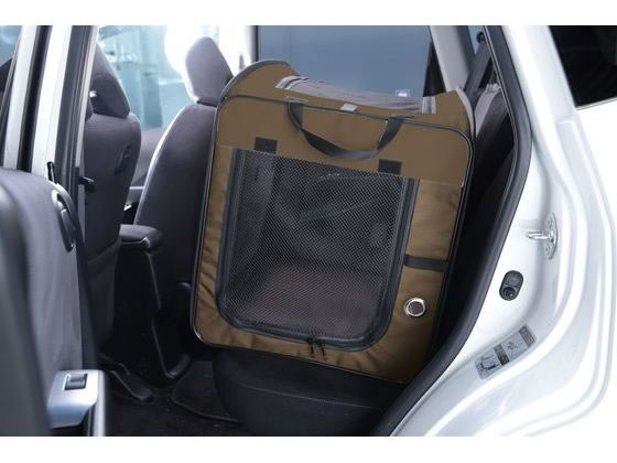 小さく折りたたみ収納や持ち運びにも便利です。天面はファスナーで開閉可能になり、上部からのぺットの出し入れができます。正面入り口の扉はロールアップして固定できます。給水ボトルを取り付けることが可能で外出先でも簡単に水分補給ができます。車の後部シートに設置できます。