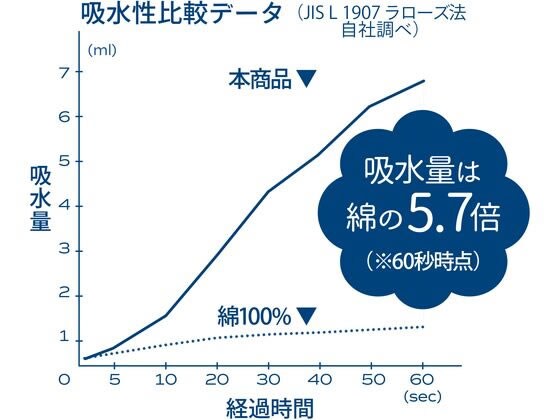 【綿の5.7倍の吸水力】水に触れた瞬間、サッと吸水してくれます。その吸水力はなんと綿のタオルの5.7倍!