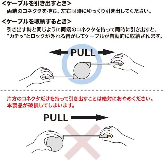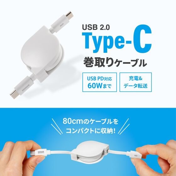 コンパクトに収納可能な巻き取り式のUSB2.0 Type-Cケーブル。PD60W対応。