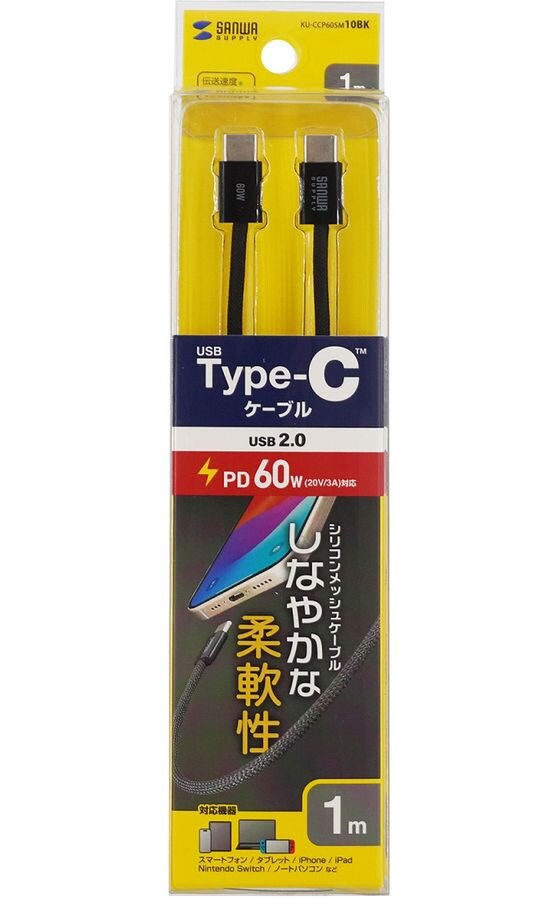【お取り寄せ】 サンワサプライ USB Type-Cシリコンメッシュケーブル 1m KU-CCP60SM10BK USBケーブル C to ケーブル 電源タップ 配線パーツ 家電
