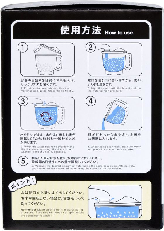 ・お米が回転しない場合は、容器をふって洗ってください。