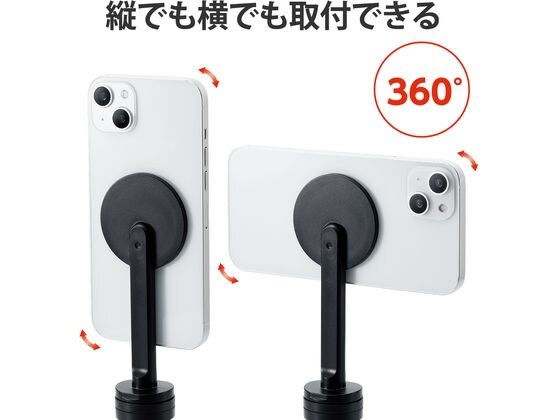 ●マグネット部分から三脚までは十分な長さがあるので、スマートフォンを縦にしても取り付けが可能です。