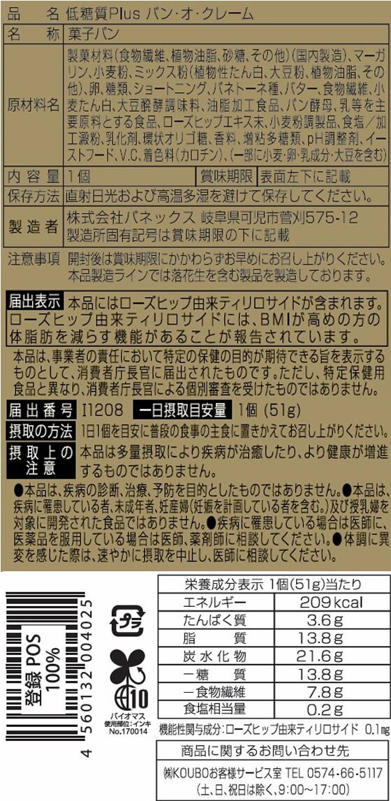 パネックス 低糖質Plus パン・オ・クレーム 菓子パン パン 食材 食品