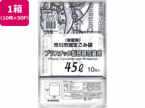 【お取り寄せ】送料無料 日本技研 市川市指定 プラスチック製容器用 45L 10枚×50P 半透明タイプ ゴミ袋 ゴミ箱 清掃