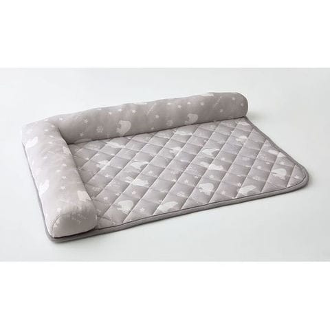 表生地に接触冷感生地を使用しペットの暑さ対策に最適。中綿入りのL字枕付きで、あごを乗せたり体ごともたれてくつろげます。裏面は滑りにくい加工で安心です