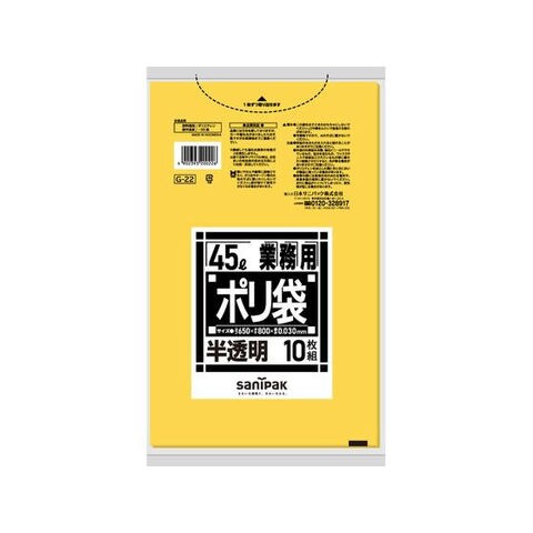 日本サニパック 業務用ポリ袋G45L黄半透明10枚 G22